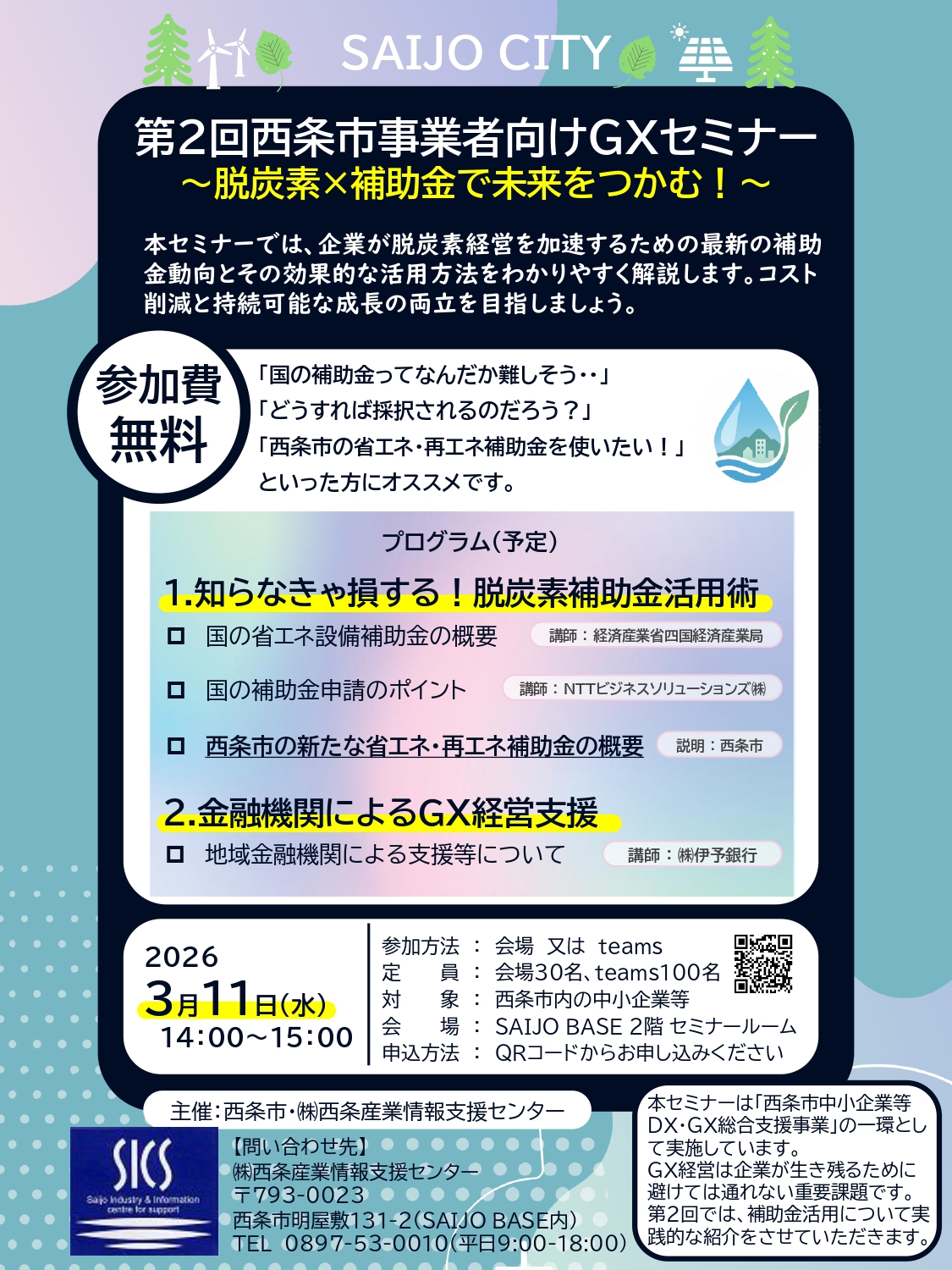 今回のセミナー第2回西条市事業者向けGXセミナーでは